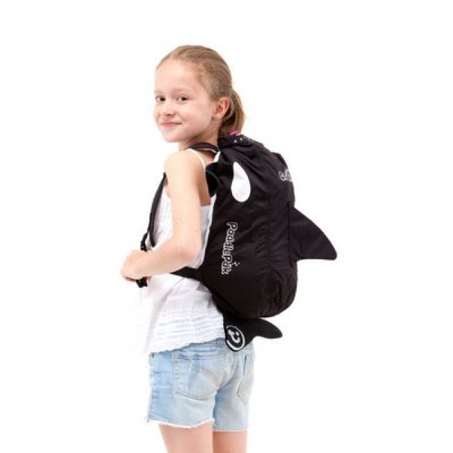 Trunki otroški vodoodporni nahrbtnik Paddlepak je zasnovan v obliki atraktivnega kita orke. Izdelan je iz kakovostnega vodoodpornega materiala s podloženo hrbtno stranjo.Naramnice so opremljene z odsevnikoma, ki zagotavljata odlično vidljivost tudi ponoči. Prostornina nahrbtnika znaša okoli 10 litrov, kar je dovolj za suhe obleke in malico. Pod nahrbtnikom se nahaja majhen žepek z zadrgo, v katerega je mogoče spraviti kakšen evro ali ključe. V notranjosti je všit tudi večji suhi žep za hitro dosegljive stvari (denarnica, robčki, sončna očala,...).Za daljše izlete lahko na rob nahrbtnika zataknete stekleničko za vodo.