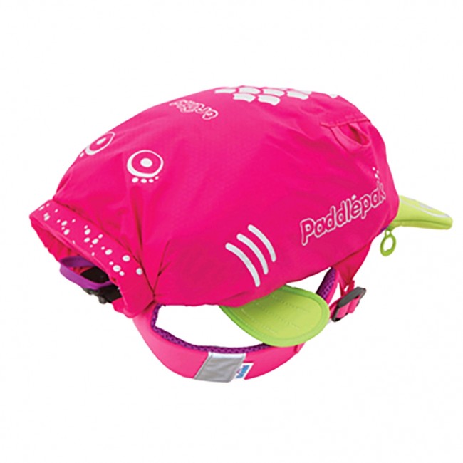 Trunki otroški vodoodporni nahrbtnik Paddlepak je zasnovan v obliki prikupne rožnate ribice s hrbtno podlogo, repkom in plavutkami.Izdelan je iz kakovostnega vodoodpornega materiala s podloženo hrbtno stranjo.Naramnice so opremljene z odsevnikoma, ki zagotavljata odlično vidljivost tudi ponoči. Prostornina nahrbtnika znaša okoli 7.5 litrov, kar je dovolj za suhe obleke in malico. Pod nahrbtnikom se nahaja majhen žepek z zadrgo, v katerega je mogoče spraviti kakšen evro ali ključe.